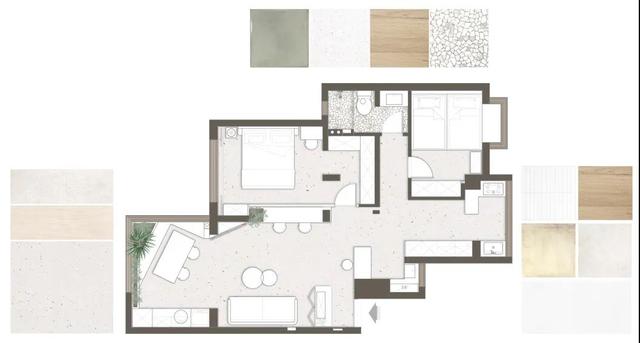 整屋表面积约90㎡,是三居室的户型,房龄比拟老。和很多老屋子一律,这套屋子没有分别独立的客堂和餐厅,屋内也惟有一个盥洗室。便宜也比拟鲜明,屋子是南北朝向的,采写和透风性都比拟好,南向还带有一个大平台。
