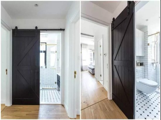 往卧室过渡,从这边往里走就是主卧、女儿房、公卫了!公卫选择谷仓门与厨房遥相呼应。