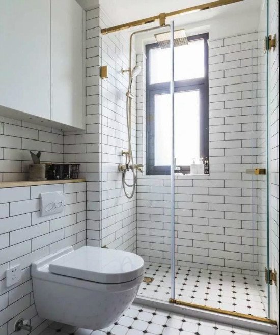 在色彩风格上,从墙面、柜体再到地面的黑白花砖,整体色调整齐划一,又通过不同的拼接方式,让空间变得生动起来!