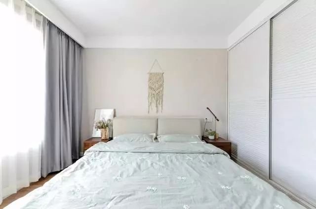 这是爸妈的房间,采用莫兰迪色系的软硬装,点缀原生态的装饰品,不会过于花哨,刚好满足长辈的需求。